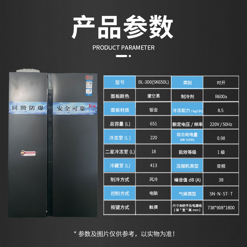 左右開門防爆冰箱系列機型通過特殊防爆技術(shù)加工處理,廣泛應(yīng)用于國防、科研、石油、化工、醫(yī)藥、加工制造、生物等存在ⅡA、ⅡB、IIC級,T1~T4組可燃性氣體、蒸汽與空氣混合形成的易引發(fā)爆炸的危險場所,是針對有溫度控制要求場所設(shè)計的特種防爆冰箱,防爆冰箱BL系列產(chǎn)品均通過國家防爆電氣產(chǎn)品質(zhì)量監(jiān)督檢測中心檢驗,獲得國家防爆電氣設(shè)備防爆合格證CNEx22.2564X;其外形美觀,設(shè)計合理并具有安裝維修方便等特點,全系列防爆冰箱內(nèi)部采用壓縮機、微電腦控制、數(shù)字顯示,具有噪聲低、性能穩(wěn)定、操作簡便等優(yōu)點。深受廣大特需行業(yè)客戶喜愛,并以部分錄入特需行業(yè)定點采購名錄。